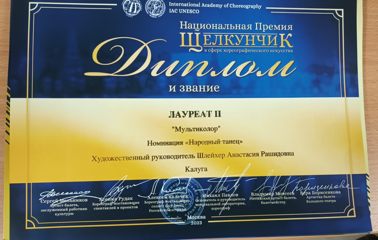 Гала-концерт Международного фестиваля Национальной премии «Щелкунчик» собрал в Гостином Дворе недалеко от Красной площади 200 коллективов из разных городов России и ближнего зарубежья. Вели его актер Александр Олешко и телеведущая Юлия Михалкова. Наряду с яркими российскими исполнителями участвовать в концерте выпала честь и калужскому детскому танцевальному коллективу «Мультиколор». Наши юные земляки танцевали под песню Родиона Газманова «Мы – вместе». В конце выступления одна из самых маленьких участниц – София вышла на сцену с флагом Калужской области. Красно-зеленое полотнище, увенчанное имперской короной, было развернуто в самом сердце Москвы.