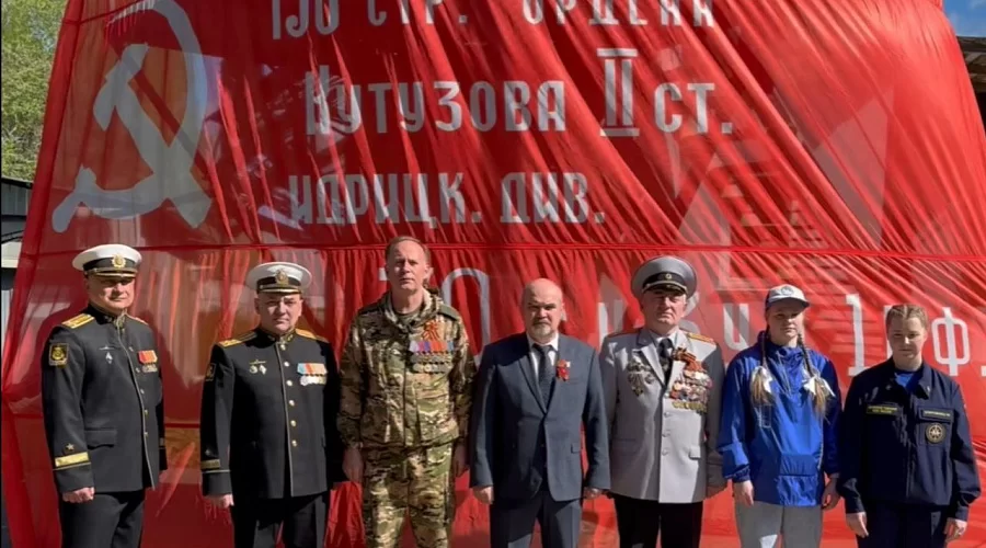 Это копия знаменитого штурмового флага 150-й ордена Кутузова II степени Идрицкой стрелковой дивизии.