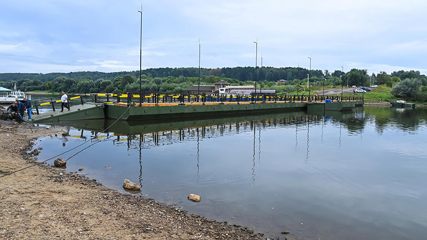 Напомним, сооружение было установлено на Оке в конце августа прошлого года и стало подарком ко Дню рождения города. 124-метровый мост оборудован деревянным настилом и перилами, на нем устанавливается освещение. На период ледостава мост разобрали, по заверению монтирующей организации к Первомаю монтаж будет завершен и калужане и гости города смогут переходить по нему на другой берег Оки. Установку моста после зимы начали две недели назад, теперь, когда уровень воды спал начались монтажные работы.