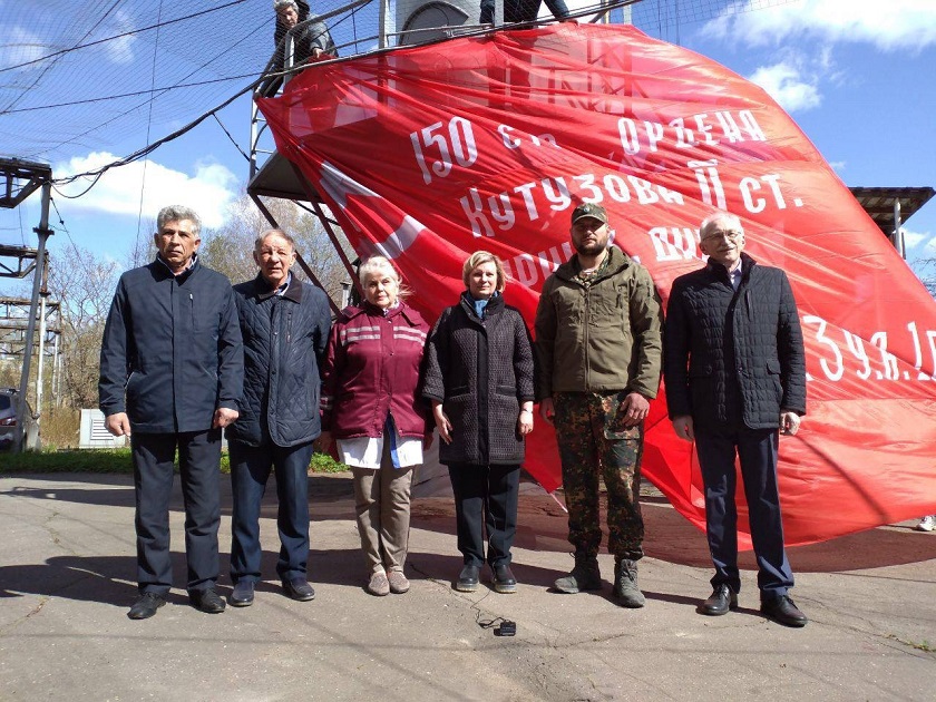 В этом году символичное красное знамя на вершину метеорологической вышки водрузили старший фельдшер отделения скорой помощи клинической больницы №8 Вера Иванина и военнослужащий отряда специального назначения «Радон» Василий Трубников.
