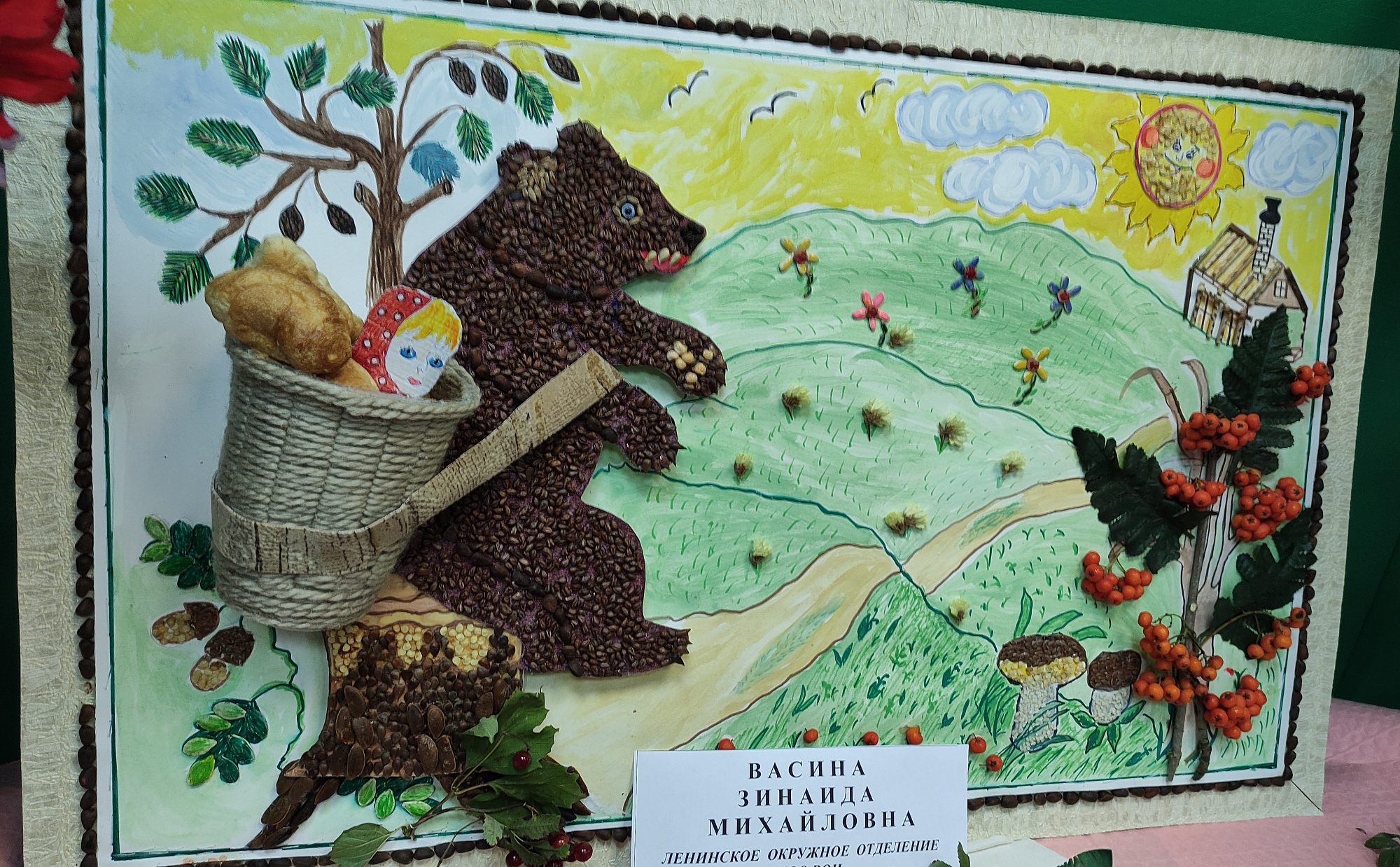 Удались перцы и другие овощи у супругов Бабаевых, а из кабачка они сотворили чудо-кита с фонтаном. Еще один кабачок, сросшийся из двух плодов, вдохновил мастерицу Ларису Калинину на создание корабля. Ларисе и ее маме Зинаиде Васиной нет равных по креативу из природного материала. Нынче Зинаида Михайловна изготовила из семян растений панно, а героиней выставки стала ее ростовая кукла в сарафане, с головой из капусты и в кокошнике, на котором написано: «Кыш, корона! »