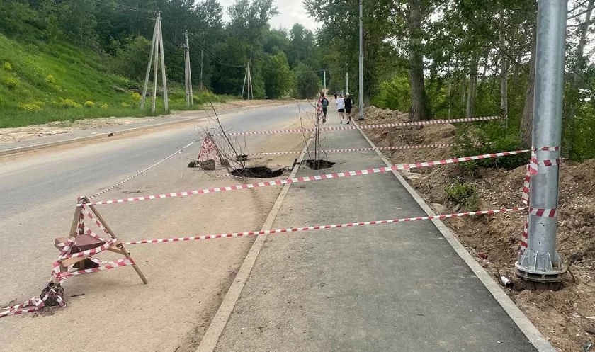 В Калуге на набережной Яченского водохранилища провалился асфальт.