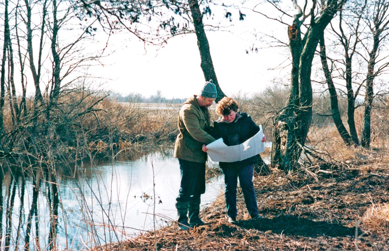 На Залидовских лугах зам. директора по науке НП "Угра" Татьяна Гордеева и орнитолог, доцент КГУ Виктор Марголин.