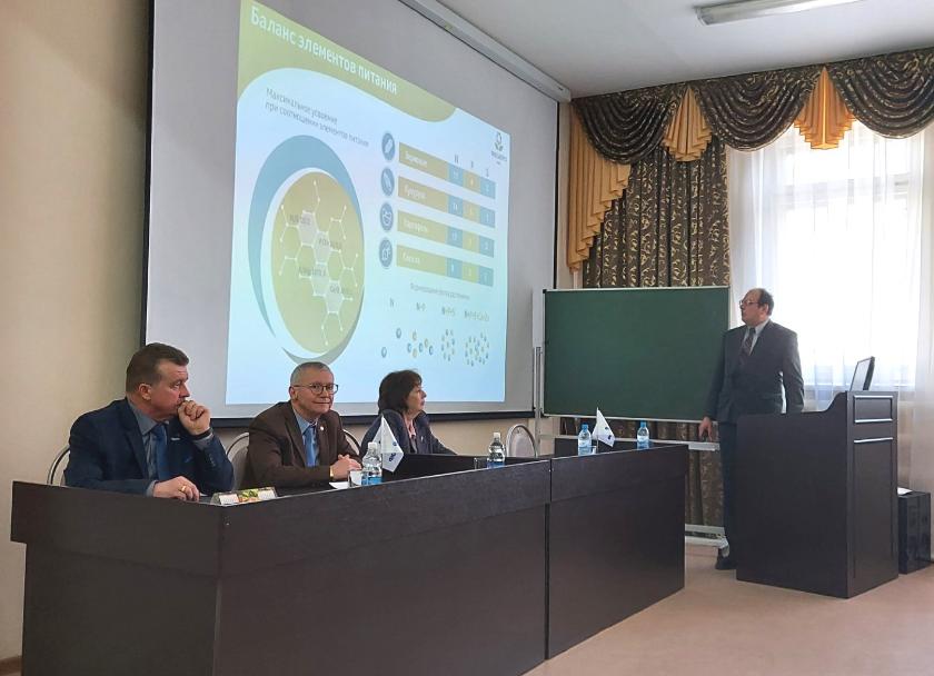 На семинаре были обсуждены наиболее актуальные вопросы применения минеральных удобрений в хозяйствах области в этом году. В частности, рассмотрены темы: удобрение с мезо- и микроэлементами, жидкие комплексные удобрения от компании «ФосАгро», защита сельскохозяйственных культур.