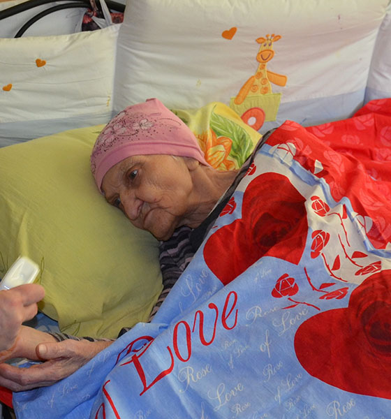 Мария Петровна была крайне истощена и не могла подняться с дивана без посторонней помощи. Из одежды у нее были только ночнушка и халат неопределенного цвета - настолько грязными они были. Ко всему прочему бабушка полностью ослепла - по причине отсутствия лечения катаракты у нее атрофировалась сетчатка глаз.