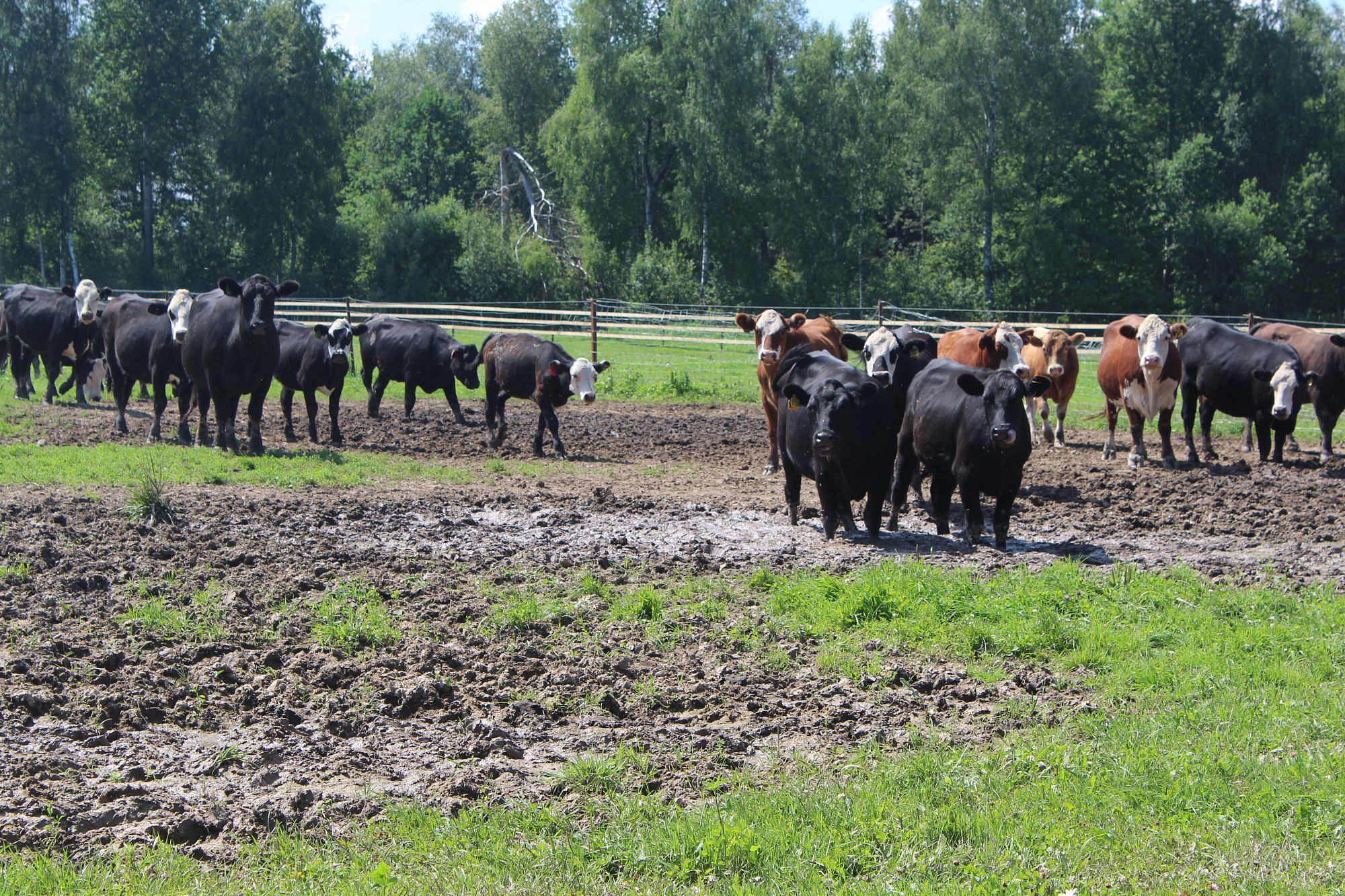 Сено для кормов заготавливается тут же, на пастбищах. Помимо свежей травы и сена коровы получают пищевые добавки - смесь минеральных солей производства боровской компании «Витасоль». Рядом с минеральными кормушками предусмотрены специальные растяжки, пропитанные антипаразитарными растворами от оводов и слепней. Животное, прикасаясь к таким сооружениям, избавляется от кусающих насекомых.- Коровы здесь почти самостоятельны, - говорит Сергей Никишин. - Наша задача - обеспечить им максимально комфортное существование в среде обитания, близкой к естественной. Поэтому даже рожденный телёнок уже после пары дней, проведенных в родильном помещении, отправляется на пастбище к стаду. Именно так он получит крепкий иммунитет и будет менее подвержен болезням.