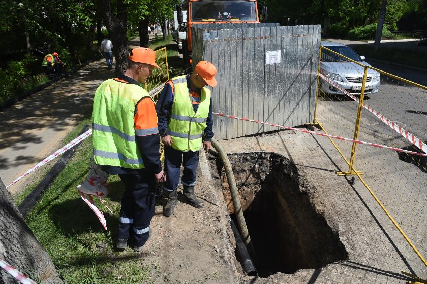 Все срывы сроков укладки выравнивающего слоя из-за утечек происходят по вине самой подрядной организации, так как при фрезеровании и укладке первого слоя асфальта весь мусор и остатки срезанного асфальта с дорог попадали в колодцы. Это привело к засорам канализационных коллекторов и порывам на сетях водоснабжения и как следствие - вытеканию питьевых и сточных вод на рельеф.