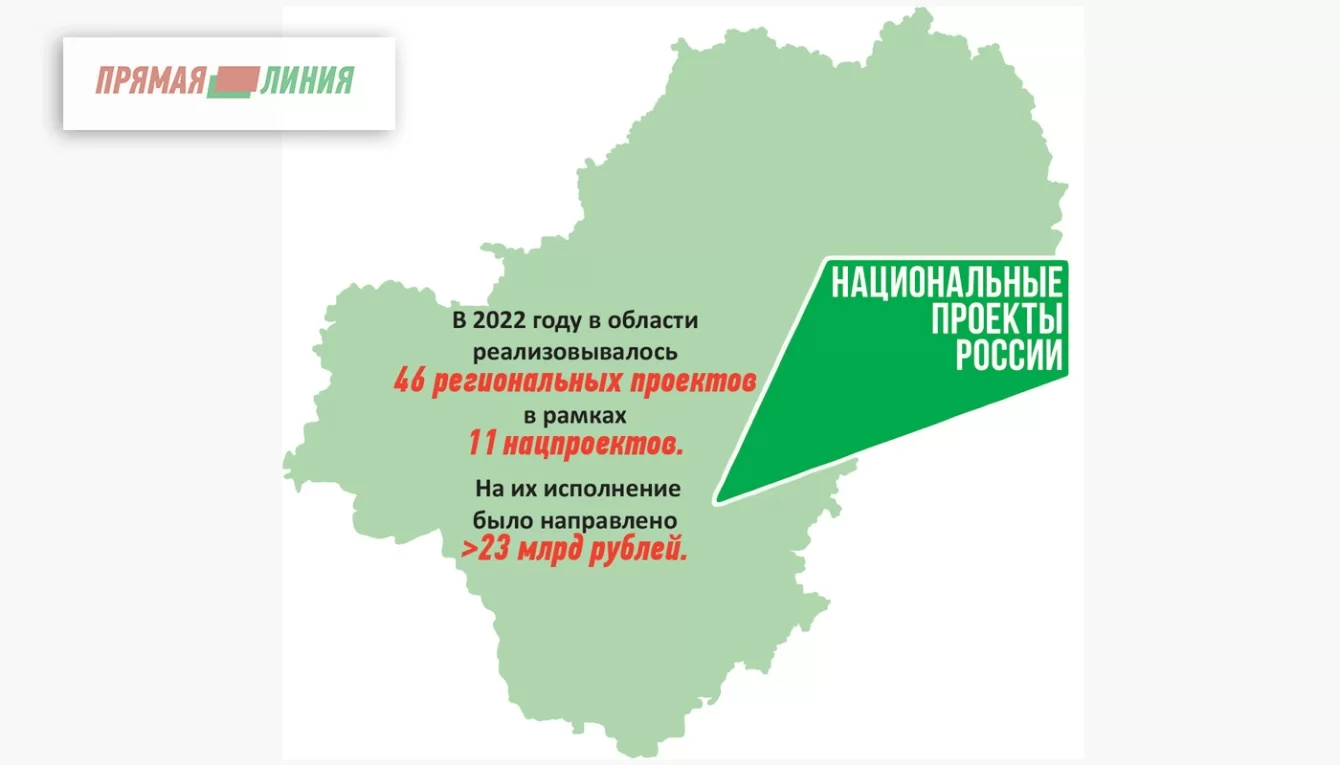 Национальные проекты, начатые в нашей стране по инициативе президента, дают большие возможности для решения в регионах, в том числе и в нашей области, различных инфраструктурных и социальных задач, с которыми не справиться только собственными силами. На них выделяются значительные средства, и при максимально эффективном и рачительном их использовании достигается самый главный результат – улучшается уровень жизни людей. Недавно в нашей области были подведены итоги реализации региональных проектов в рамках национальных проектов за прошедший год. Рассказываем о наиболее значительных достижениях.