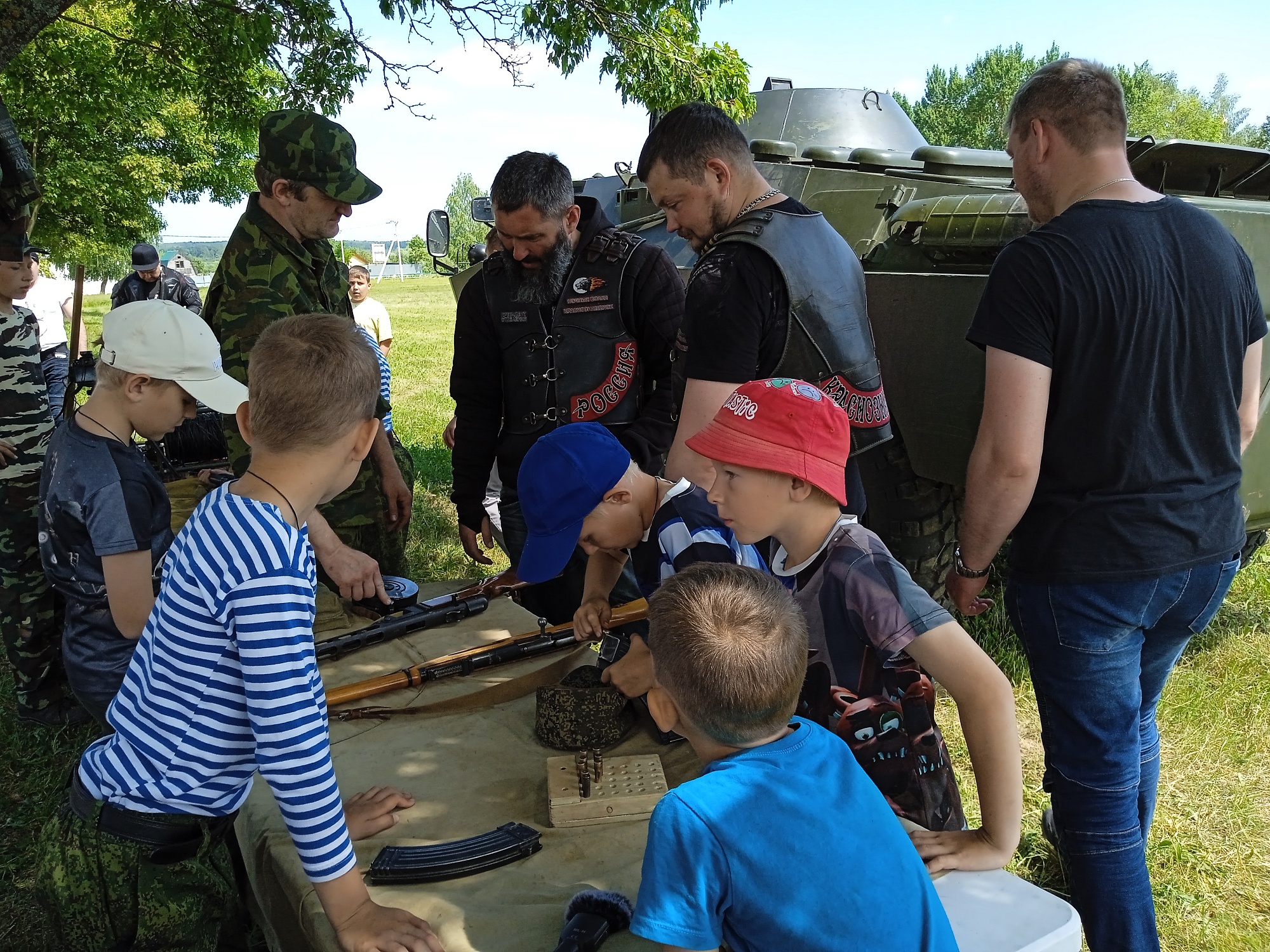 Далее мотоциклисты проследовали в село Трубино Жуковского района, где состоялось возложение цветов к могиле Неизвестного солдата. Для жителей села был организован праздник с выступлениями местных творческих коллективов и полевой кухней. Особо интересно было здесь мальчишкам – они могли научиться управляться с парашютом, познакомиться с оружием, сфотографироваться на мотоцикле или около бронетранспортера БРДМ-2, который тоже шел в колонне вместе с мотоциклами и машинами.