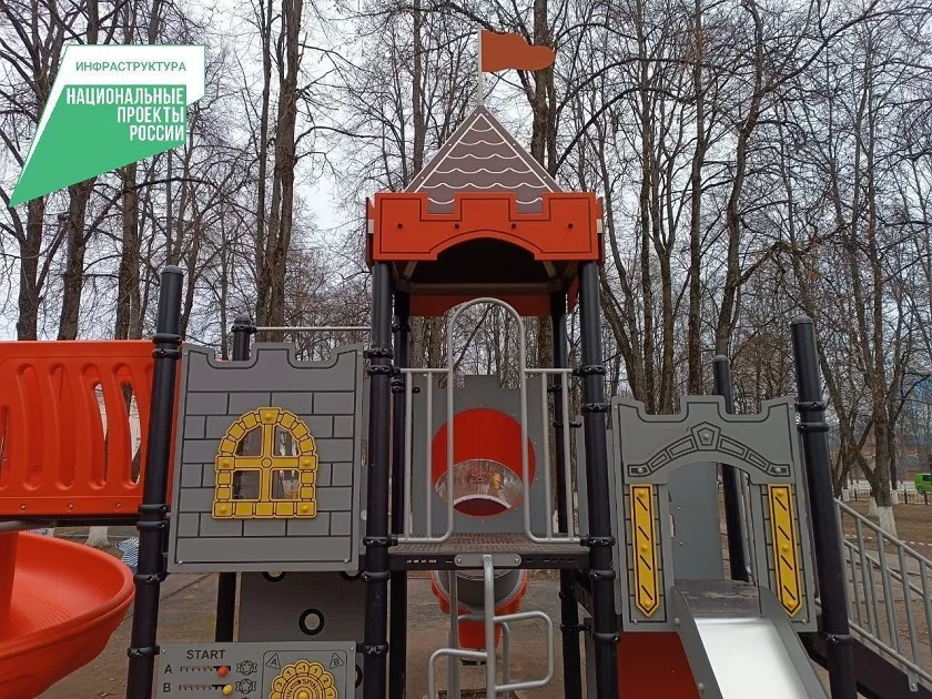 Подрядчики установили детскую площадку с замками, горками и другими элементами для отдыха детей. В ближайшее время резиновое покрытие на площадке планируется обновить, но дети и их родители уже могут отдыхать в новом пространстве.