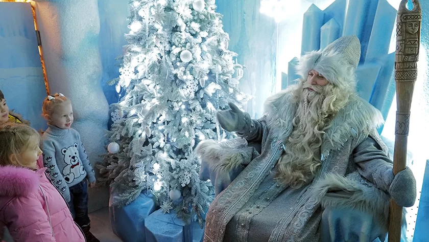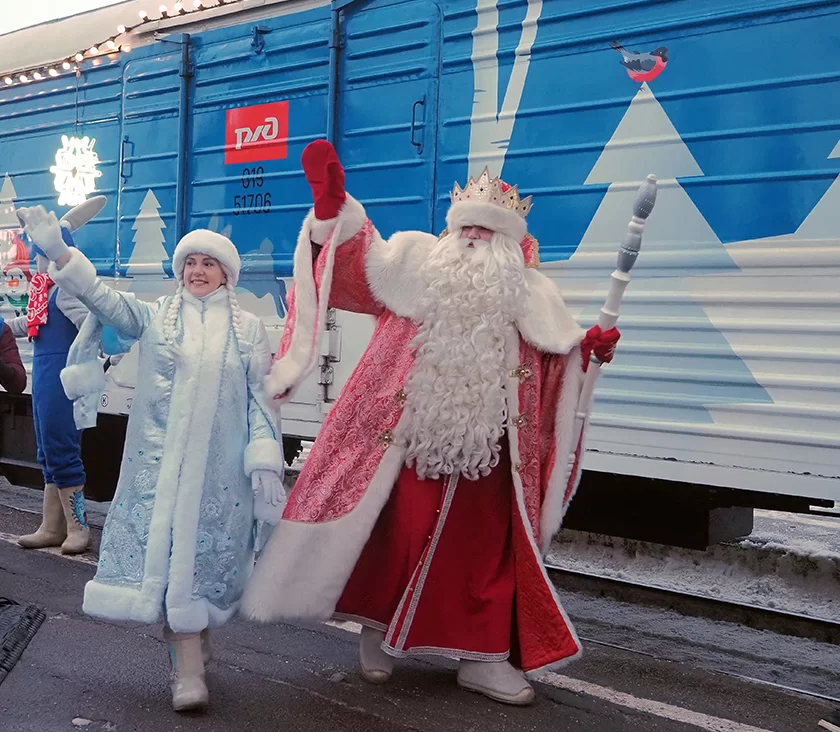 Выйдя из поезда, Дед Мороз в сопровождении Снегурочки прошествовал по перрону вокзала, от души поприветствовал калужан и пригласил продолжить знакомство в дружественной обстановке в своей приемной. Именно там в его персональном вагоне разместилась передвижная резиденция.