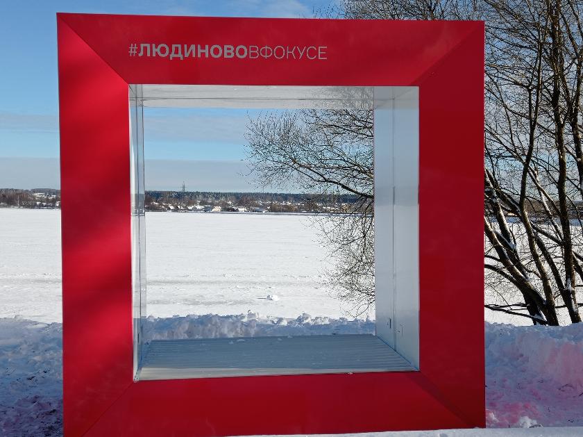 Объект «Будь в фокусе» – это большая яркая фоторамка, которая позволит людиновцам и гостям города сделать яркие и необычные фотографии, взяв в фокус то, что действительно важно – красивейший вид озерной глади, лица близких людей или собственное настроение.