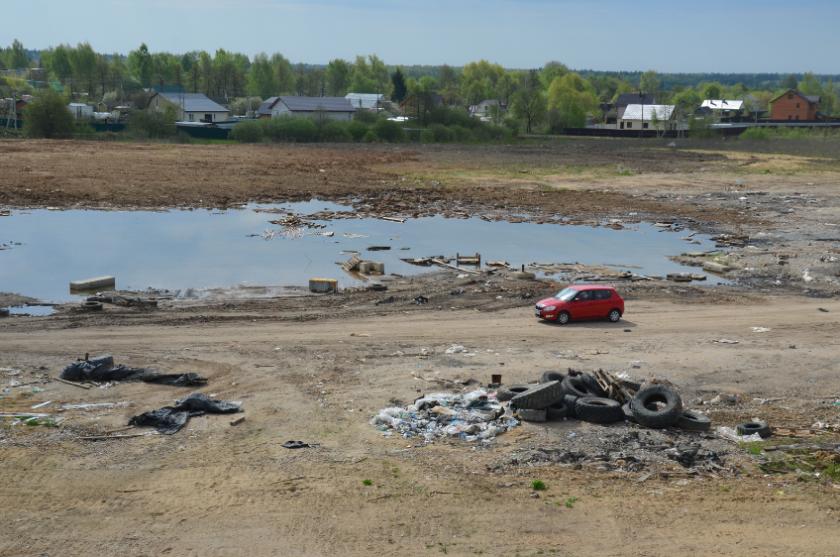 После отъезда дорожных рабочих поле у деревни Колюпаново, на котором в течение нескольких лет стояли их вагончики-бытовки, представляет собой печальное зрелище. Вместе с отличной дорогой подрядчики оставили о себе память в виде многочисленных куч строительного и бытового мусора.
