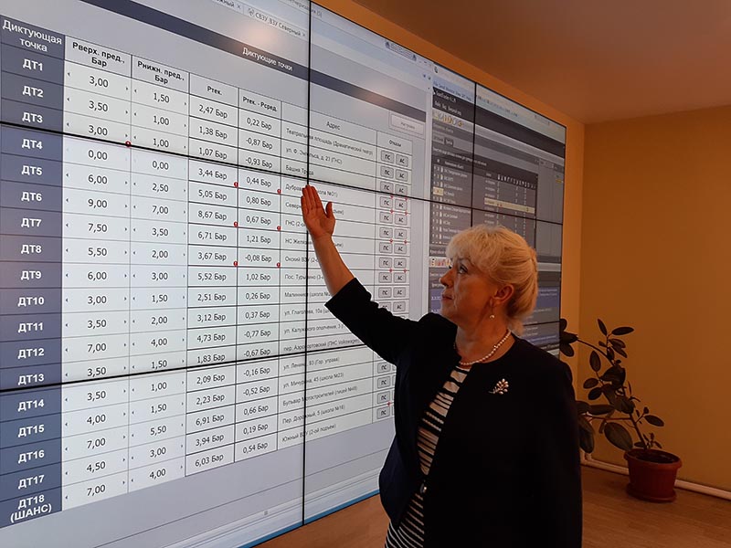 Главный монитор в диспетчерской отображает все объекты водной инфраструктуры. В диктующих точках (определенных местах водопроводной сети на карте города) измеряется давление. Отклонившийся от нормы показатель подсвечивается – это сигнал диспетчеру о том, в какой части города произошла неисправность. Далее следует оперативное принятие решения, направленного на ликвидацию аварии. Так обеспечивается бесперебойное поступление воды в наши дома и учреждения.
