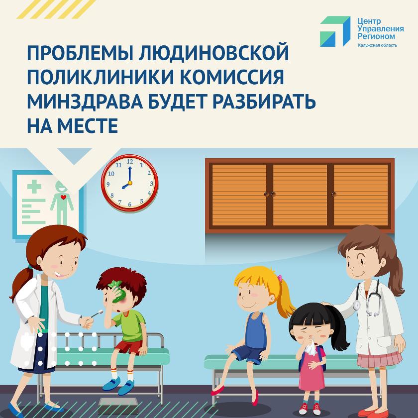 Людиновцы рассказывают в пабликах, что невозможно записаться на приём к специалистам, вызвать врача на дом, высказывают претензии к руководству медучреждения. Об этом сообщили в калужском Центре управления регионом по результатам мониторинга соцсетей. Информация была передана губернатору области Владиславу Шапше. Глава региона вынес эту тему на обсуждение в ходе заседания правительства региона. Министр здравоохранения области Константин Пахоменко сообщил на совещании, что в Людиново выехала комиссия для выяснения всех обстоятельств на месте — в медучреждении. Губернатор подчеркнул, что проконтролирует решение этого вопроса и поручил проработать все возможности, чтобы не оставить крупный район без педиатрической помощи.