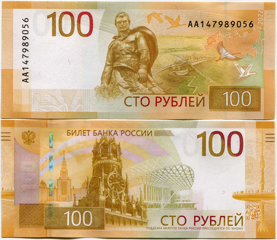 Сейчас из новинок в обороте уже находятся модернизированные банкноты номиналом 100 рублей с изображением Ржевского мемориала и Спасской башни Кремля. Выполнены они в современном дизайне и содержат усиленный защитный комплекс. Но обновленные сторублевки поступают в оборот постепенно, заменяя ветхие банкноты, и находятся в обращении наравне с существующими сторублевыми купюрами образца 1997 года включая модификации 2001 и 2004 годов.