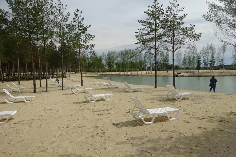 Парк окружен сосновыми лесами и включает в себя несколько искусственных водоемов с чистыми песчаными пляжами. В мае мы, конечно, купаться не стали, однако эффектных фотографий пляжной территории и живописных пейзажей сделали много. Но было ощущение, что пока это некий полуфабрикат, где нет кафе-ресторана и отеля для ночевки.