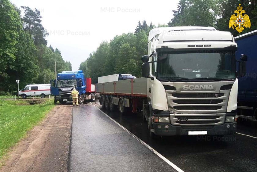 Как сообщили в региональном управлении МЧС по Калужской области, авария произошла около 13 часов в понедельник, 7 июня на 388-м километре Большого московского кольца, недалеко от пересечения с Варшавским шоссе. Здесь столкнулись два грузовика «Скания».
