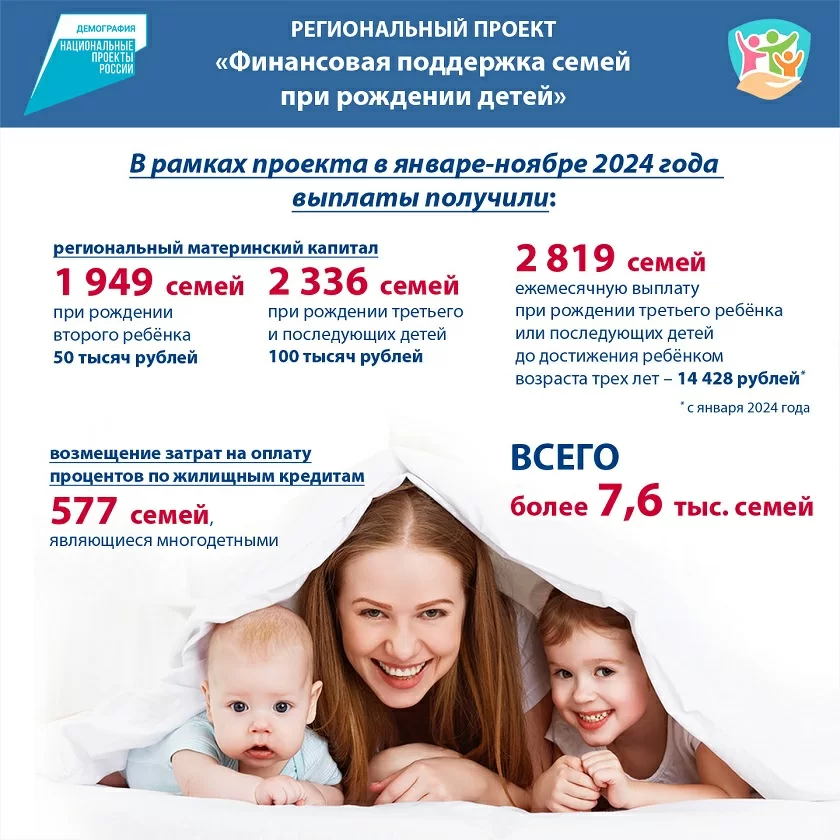 Самые эффективные мероприятия завершившегося проекта войдут в новый национальный проект «Семья», и работа, направленная на финансовую поддержку семей с детьми, будет продолжена».