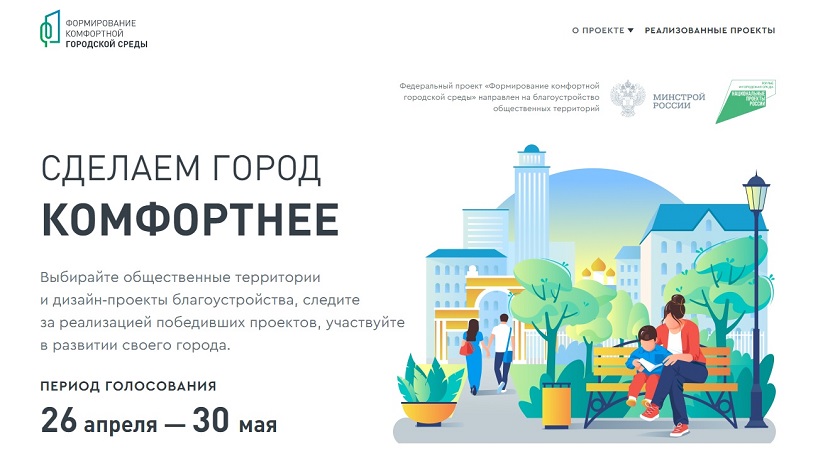 С 26 апреля по 30 мая будет проходить всероссийское онлайн голосование за территории, которые по мнению горожан, должны быть обустроены в первую очередь.
