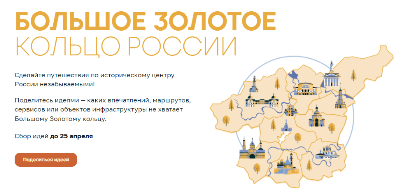 Поделиться своим видением развития туризма на территории Большого Золотого кольца можно до 25 апреля на сайте