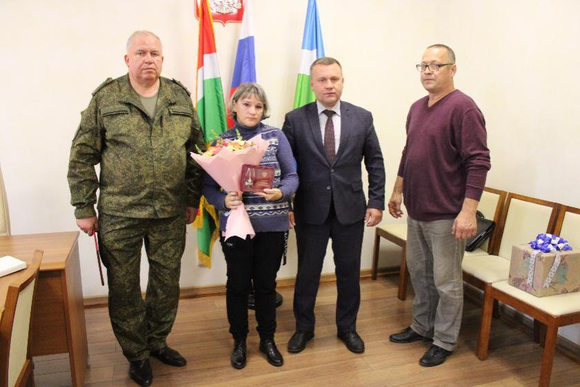 Высокую награду Нине Пановой вручили в администрации района. Глава муниципалитета Алексей Волков и военный комиссар города Калуги и Ферзиковского района Андрей Иванов выразили соболезнования вдове солдата, который мужественно защищал Родину и с честью выполнял воинский долг.