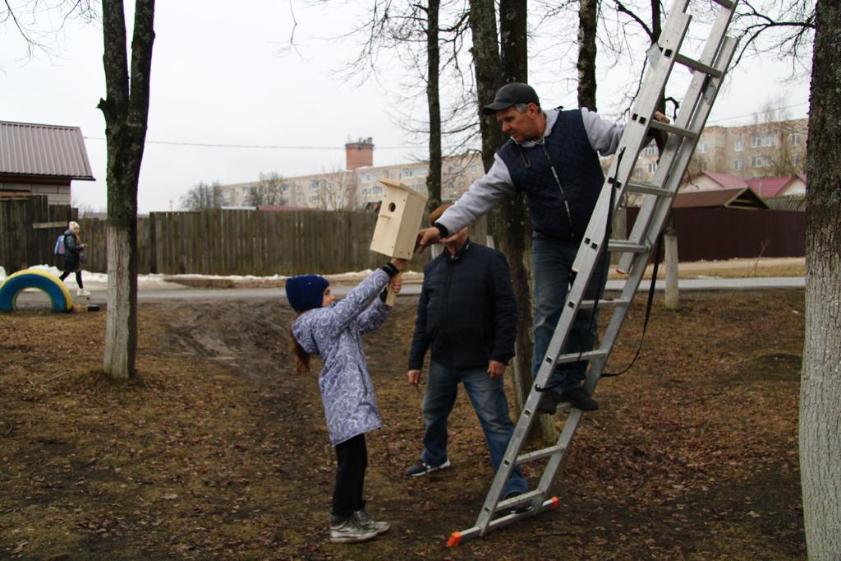 Александр Сергеевич смастерил и привез в учебное заведение 12 скворечников, которые развесили на территории обоих зданий школы и на стадионе. После уроков и во время «продленки» юные защитники природы собираются наблюдать, кому приглянутся эти новые домики.