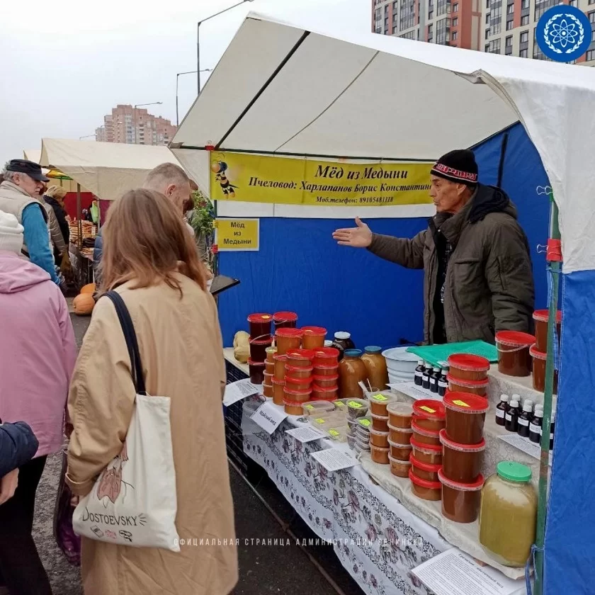 В группе администрации города сообщают, что около 100 местных товаропроизводителей представили гостям ярмарки свою продукцию: мясо, молочка, овощи, мёд и многое другое. Обнинская школа №1 предложила покупателю тыкву, капусту, картофель, кабачки и свеклу, выращенные школьниками.