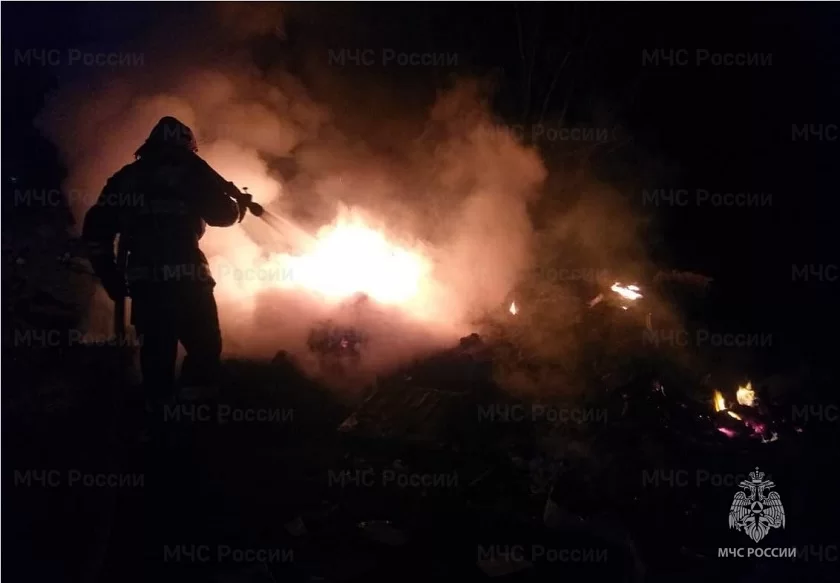 Сообщение о пожаре на железнодорожной станции Тихонова Пустынь поступило в МЧС в 1:23.