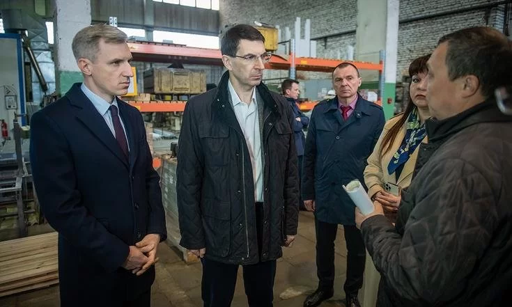 Полпред ознакомился с образцами продукции предприятия АО «Вяземский машиностроительный завод», на котором трудятся более 700 рабочих. Завод выпускает стирально-отжимные машины, центрифуги, сушильные машины, катки и гладильные столы, оборудование для обработки ковров, машины сухой химической чистки, шкафы озонирующие и вспомогательное оборудование.