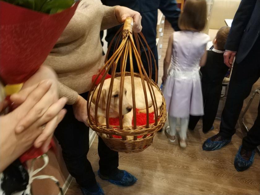 26 декабря собаку обнинской семье передали министр труда и социальной защиты Калужской области Павел Коновалов и глава администрации Обнинска Владислав Шапша. Подарок от российского Президента к Новому году порадовал всю семью.