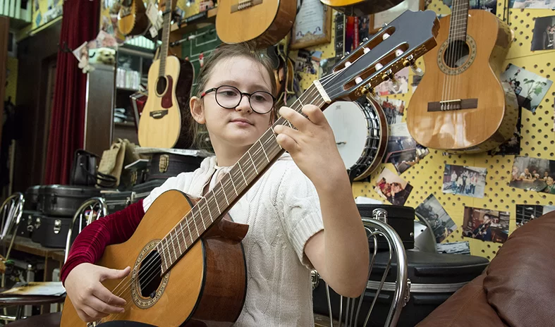 Девочка влюблена в этот инструмент и мечтает выступать с ним на сцене. Но пока она осваивает гитарную технику в Обнинской школе искусств № 1. Как и многие другие ребята, она пришла сюда не только за знаниями, но и за мечтой. Рассказом о Екатерине мы продолжаем цикл публикаций «Мы ищем таланты».