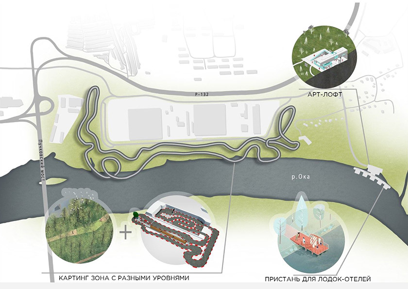Также Алексей Комов отметил широкую типологию территорий, представленную в студенческих концепциях, и с этим трудно поспорить. Авторы предлагают спортивные и культурные объекты, дают свои варианты работы с исторической средой и уже существующей городской тканью, разрабатывают разнообразные рекреационные зоны и демонстрируют градостроительный потенциал правого берега Оки.