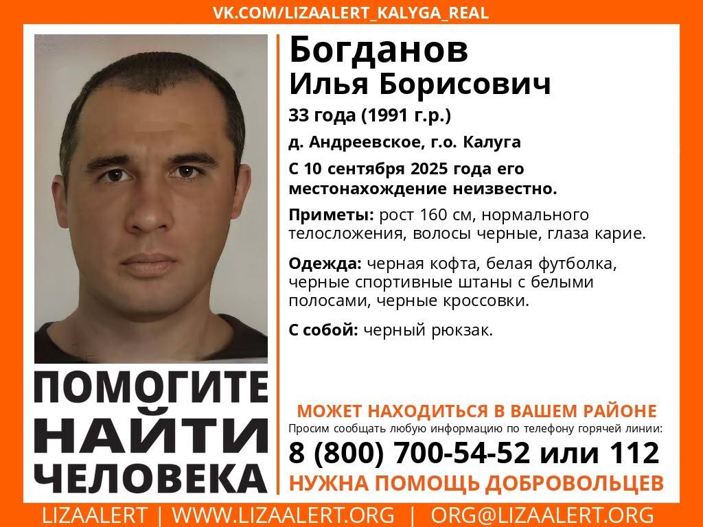 Последний раз Илью Богданова видели в чёрной кофте, белой футболке, чёрных спортивных штанах с белыми полосками и чёрных кроссовках. При себе у мужчины был чёрный рюкзак.