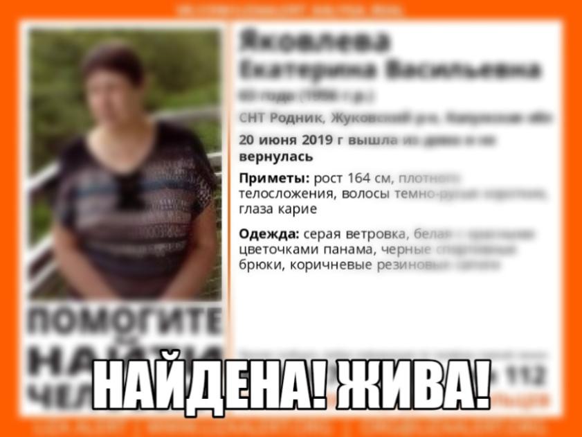Как сообщили в поисково-спасательном отряде "Лиза Алерт", исчезнувшая в Жуковском районе из садоводческого товарищества "Родники" Екатерина Яковлева найдена, с ней все в порядке.