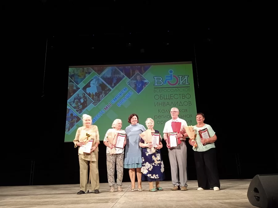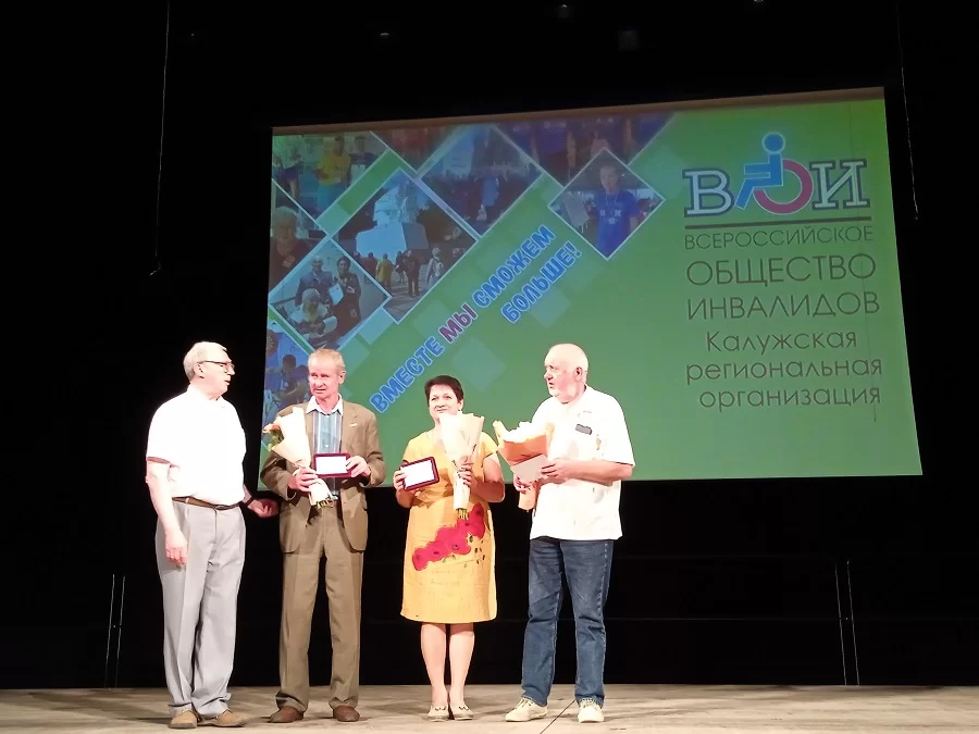 Кроме того, прозвучали поздравления от руководителя Калужского отделения социального фонда России Даниила Аганичева, председателя региональной организации ВОИ Николая Кутузова и директора специализированной библиотеки для слепых им. Н. Островского Марии Коноваловой.