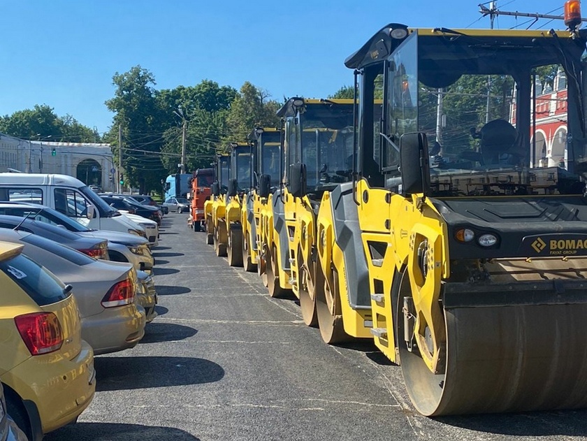 Как сообщили в Службе единого заказа городского хозяйства, дорожники готовятся к укладке верхнего слоя асфальта. На площади Старый Торг выстроилась колонна из катков.