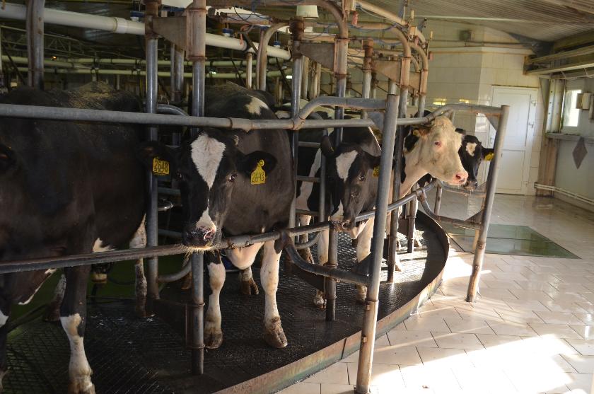 Три оператора, обслуживающие поголовье, находятся внутри установки с огромной вращающейся доильной площадкой карусельного типа, на которой и размещаются послушные бурёнки в ожидании доения. Там же расположено и современное доильное оборудование. Автоматический поворот площадки «Карусели» и задаёт четкий, быстрый темп работы операторов машинного доения. И, глядя на их работу, стоит только удивляться скорости и точности движений их ловких рук.