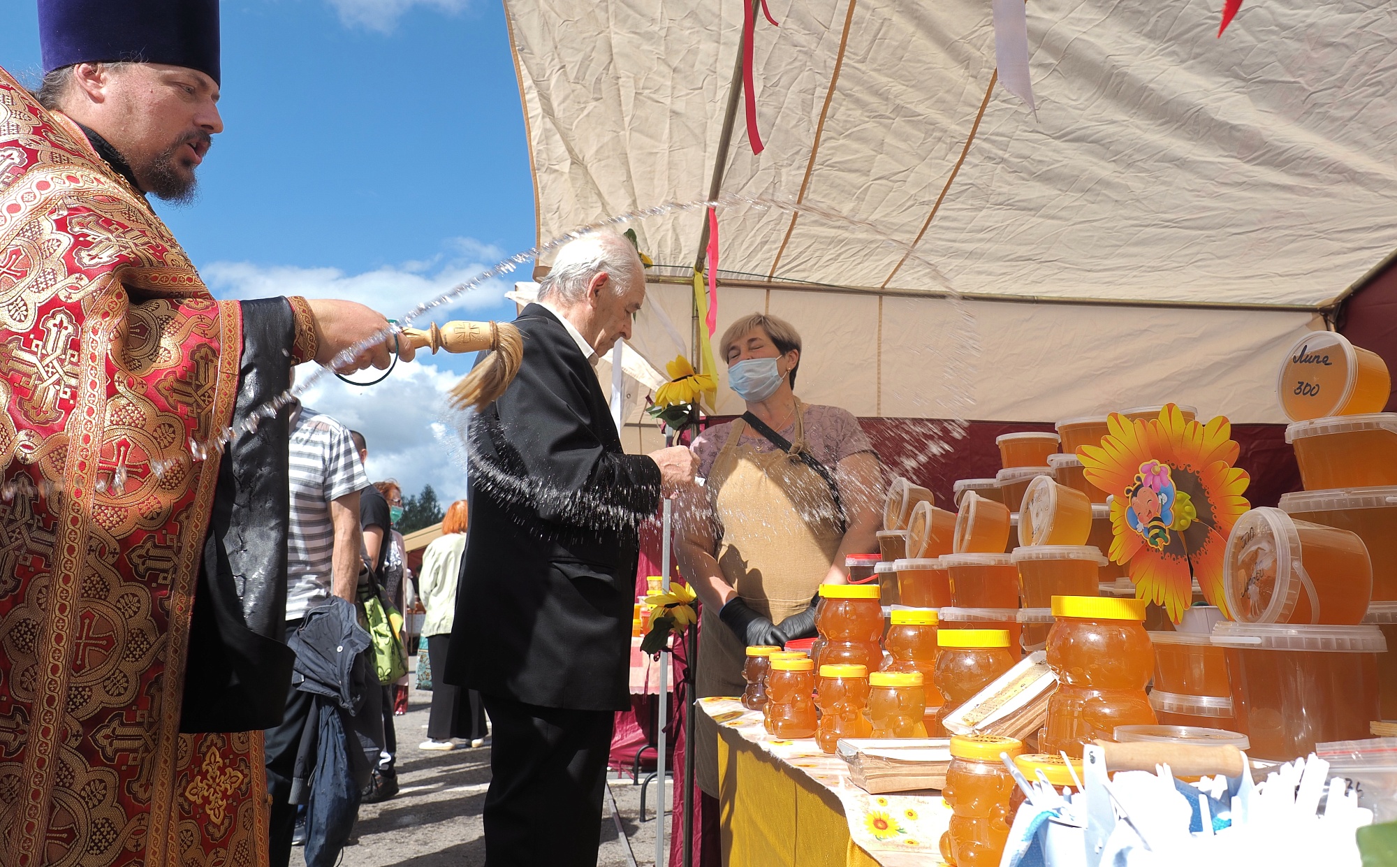 Благочинный Северного округа Калуги отец Константин провёл молебен в честь православного праздника и обряд освящения мёда. А праздничную атмосферу на ярмарке помогали создавать лучшие самодеятельные коллективы Калуги.