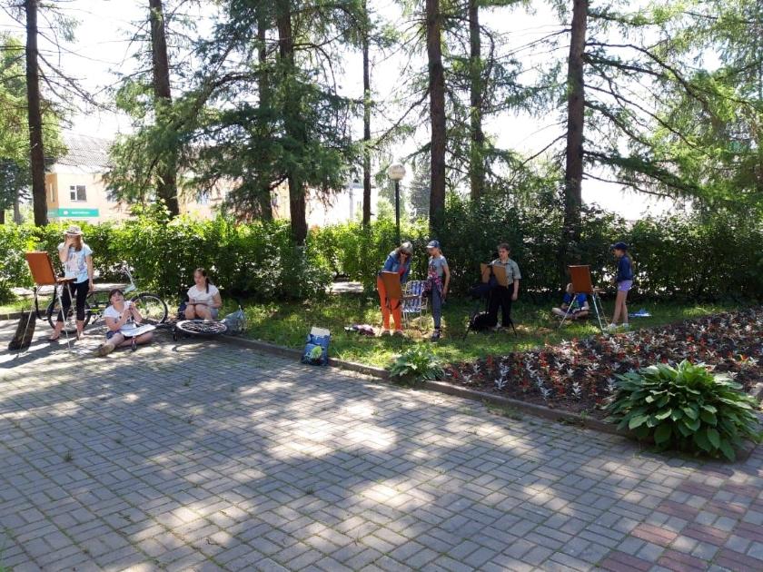 Как правило, в тёплый сезон Светлана и ее воспитанники проводят пленэры вне школы, рисуя красоты города и окрестностей с натуры. В Медыни можно встретить группу юных живописцев, увлечённо переносящих красоту родного края на бумагу. Одно такое занятие длится пару часов, а вдохновения даёт в тройном размере.Кроме того, художница часто участвует в городских праздниках и мероприятиях, проводит мастер-классы. Вот она, одетая в национальный наряд, учит делать своими руками славянские куколки-обереги. А тут, на мастер-классе, вместе со всеми желающими создаёт символ Медыни – пчелу.