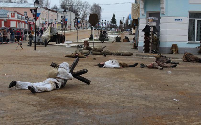 Здание городской администрации выступало в роли немецкой комендатуры. На площади располагалась военная атрибутика.