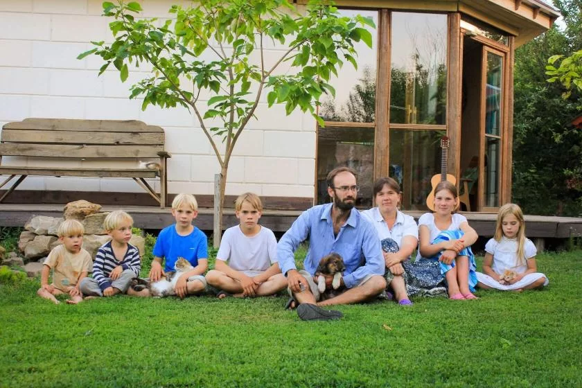 В семье восемь детей, у многих старорусские имена. Самая старшая - Глория (18 лет), затем, с разницей примерно в 2,5 года, - Ермак, Елисей, Тения, Александр, Мирон, Ульяна и годовалый Северьян. Папа не собирается на этом останавливаться и мечтает в будущем быть дедушкой не менее 50 внуков.