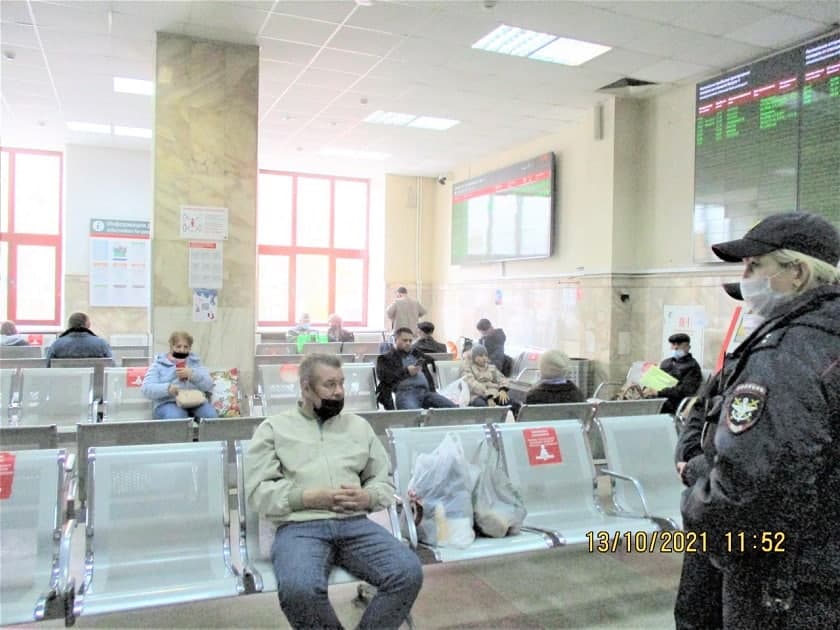 Сегодня, 13 октября, сотрудники управления административно-технического контроля вместе с транспортной полицией провели рейд по соблюдению масочного режима на вокзале Калуга-1.