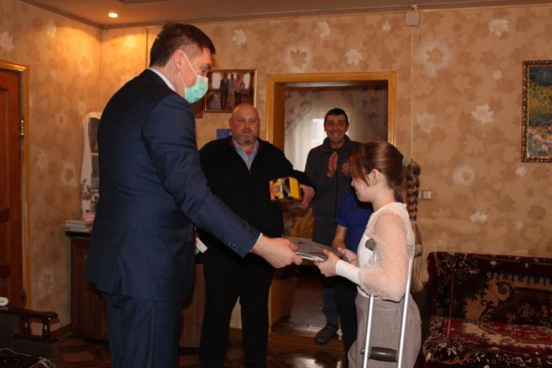 В свободное время Анастасия увлекается игрой на трубе, занимается в музыкальной школе. В знак благодарности она исполнила для своего волшебника музыкальную композицию. Иметь свой ноутбук — была давняя мечта Насти. Новый Год это время чудес и в эти дни принято загадывать желания и дарить подарки. С большим удовольствием Александр Савин вручил Анастасии долгожданный подарок и пожелал ей крепкого здоровья, успехов в учебе, новых возможностей и конечно, взял на контроль все медицинские и хозяйственные трудности этой семьи.