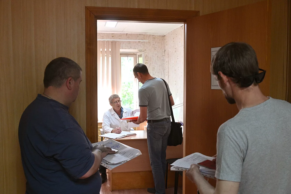 Первое, что бросилось в глаза, – удобная и грамотная организация. Людям не надо тратить свое время, мотаться по городу, собирая различные справки и заполняя анкеты. Все можно сделать в одном месте - непосредственно на пункте отбора: сдать анализы, пройти врачебные осмотры, психологическое тестирование и собеседование с работниками военкомата и психологом.