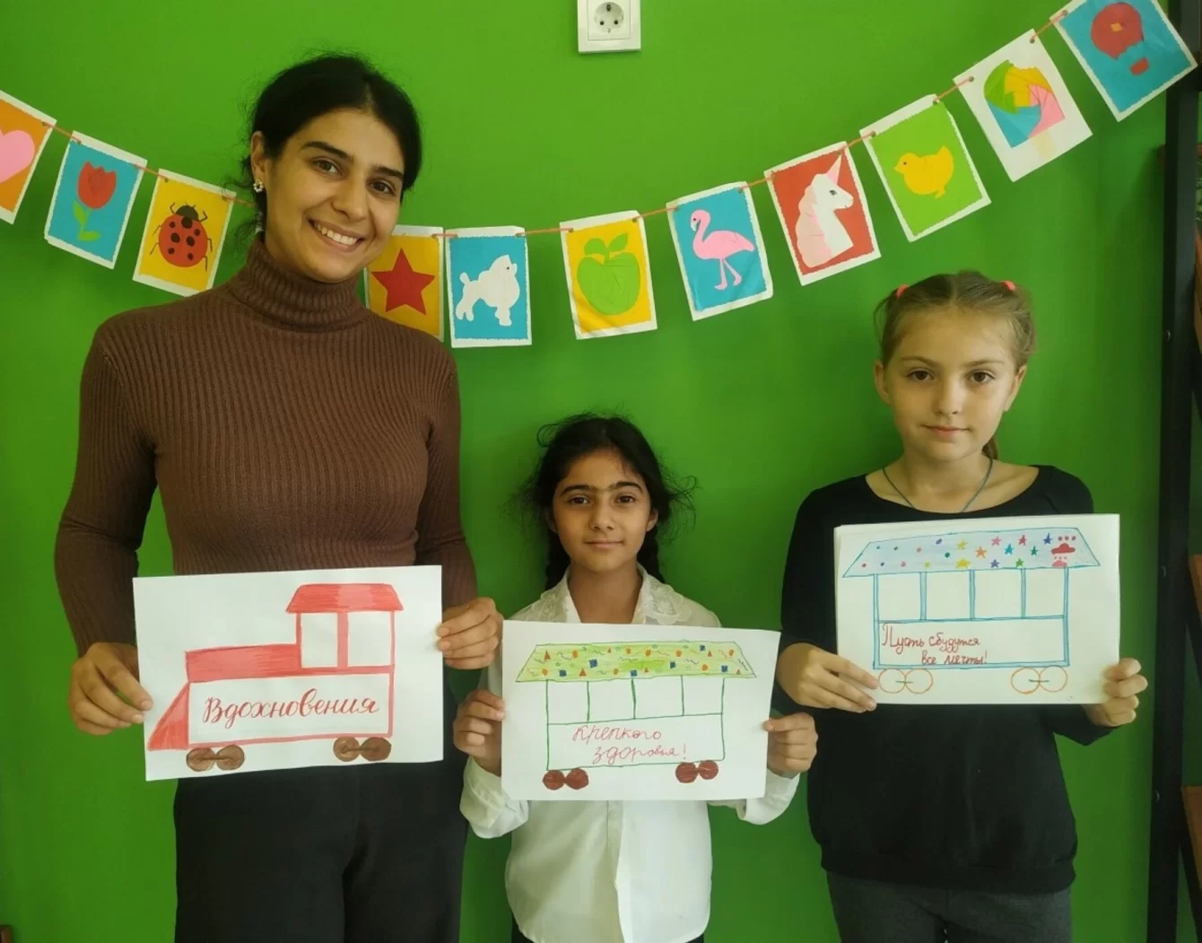Ученики разных возрастов из Медынской, Радюкинской, Кременской, Михеевской школ сделали плакаты и нарисовали изображения поезда. Именно это транспортное средство - локомотив с вереницей вагонов - символизирует крепкое объединение и постоянное движение вперед. Кроме того, ребята приложили к рисункам свои послания с теплыми словами к жителям новых российских регионов.