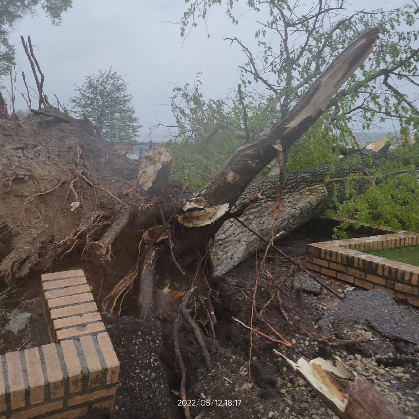 В Людинове в самом центре города шквалистый ветер повалил несколько деревьев. Также на дорогах оказалась унесенная ветром крыша. На одном из фото заметно, что ураган вырвал дерево прямо с корнями, упавшее растение забаррикадировало вход в одно из зданий.