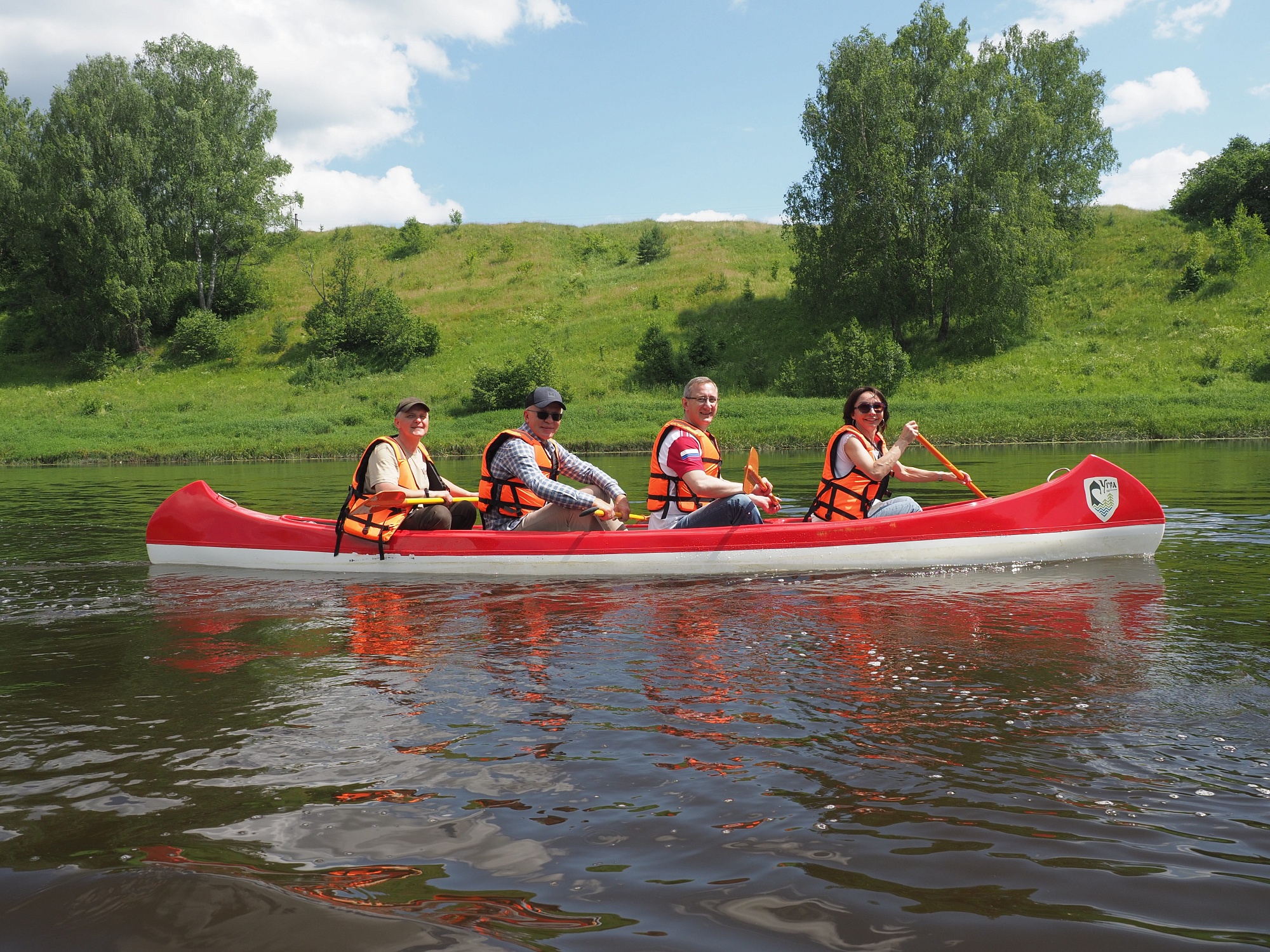 Передвигаться высоким гостям парка в этот день пришлось не только посуху, но и по воде. Впечатлениями от сплава по Угре на каноэ они делились с журналистами прямо на пристани в кемпинге «Папаево».- Фантастические впечатления, - сказал Вячеслав Фетисов.