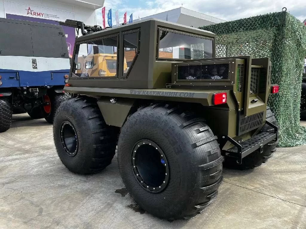 Свою разработку малоярославчане назвали «Калужанином», в честь региона, где создан этот уникальный этот вездеход. «Калужанин» уже вызвал большой интерес и у сотрудников МЧС, и у правоохранительных органов, и у военных. Вес машины – 1,5 тонны, грузоподъемность – 1 тонна стали, проводов и кабины беспилота. Машина с огромными колесами может покорять недоступные маршруты. Платформа модульная и универсальная, на которую можно устанавливать дополнительное оборудование, в том числе и вооружение.