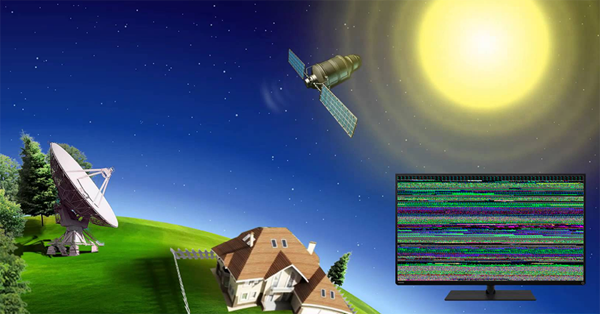 Интерференция возникает, когда Солнце встает ровно позади спутников связи. Солнце — мощный источник радиоволн, и сигналы светила «засвечивают» сигнал спутника. Суть явления проще всего представить через аналогию: если позади свечи включить прожектор, свеча станет незаметна в потоке света. Расположение Солнца на прямой линии со спутником связи и земной приемной станцией длится несколько минут, затем благодаря вращению Земли вокруг своей оси спутник связи уходит из-под «солнечной засветки». Во время интерференции изображение на экранах телевизоров может пропадать или рассыпаться. Но длится это недолго — от нескольких секунд до 5 минут.